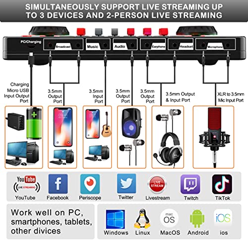 Great Mixing Device Compatibility: Compatible with computer, PC, laptop, (iPad, iPhone, maybe needs the Adapter) tablets, smartphone, speaker gaming devices, Ps4, PSN, Xbox One, Xbox, Switch, IOS, Android, Windows, and electronic musical instrument.