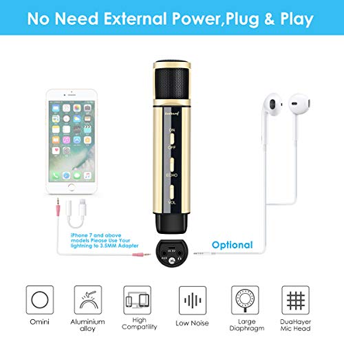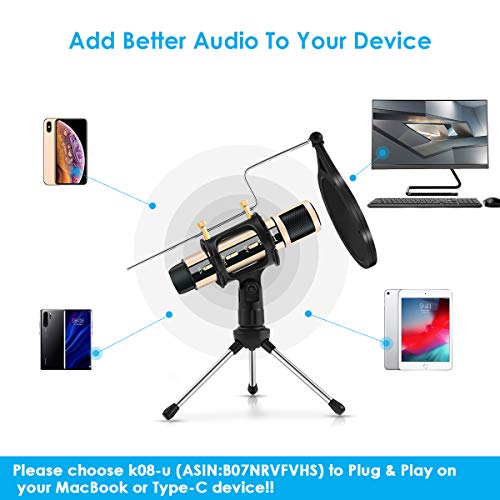 ♪【Plug and play & User-friendly】: Built-in 3.5mm jack recording microphone for Android phone iphone tab computer PC laptop that connects directly to 3.5mm port for record music, singing, live streaming or podcast. With Y-splitter compatible with most kinds of PCs and never cause loss in voice conversion like USB mics. (Notes: Macbook needs a USB sound card adapter not include)